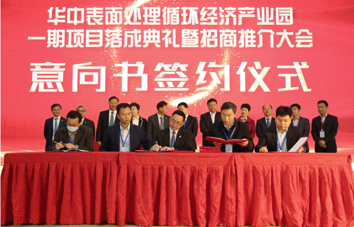 2020年11月8日,华中表面处理循环经济产业园(以下简称华中园区)一期项目落成典礼暨招商推介大会在园区举行。市委常委、常务副市长向斌,市委常委、市政府党组成员、荆州开发区党工委第一书记张远梅,荆州开发区管委会主任苏云国等政府领导,中国表面工程协会理事长马捷及各行业协会代表,意向签约企业代表,金茂源环保集团员工等共三百余人参加本次活动,共同见证华中园区开启新征程的历史时刻。